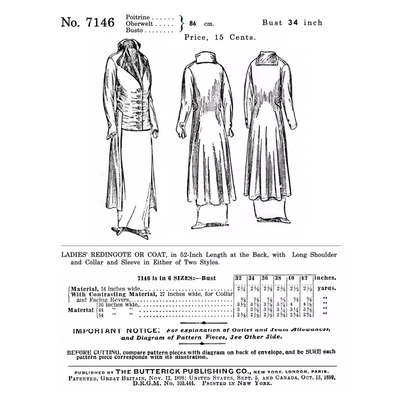 This Mid 1910s Redingote Sewing Pattern Set was originally published by Butterick Pattern Company