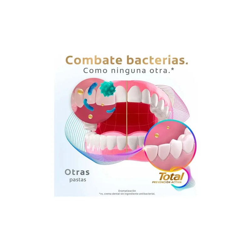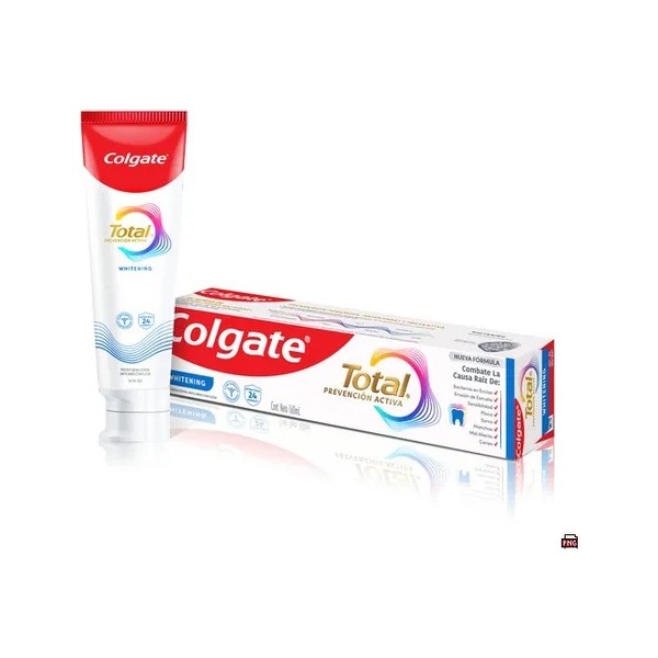Colgate, una marca reconocida en el cuidado dental, respalda la calidad de este producto, brindando confianza a los consumidores. La Pasta de Dientes Total Whitening es más que un simple producto de higiene; es una inversión en tu salud dental y en la estética de tu sonrisa. Asegúrate de incluirla en tu rutina diaria y disfruta de los beneficios de una boca sana y radiante.