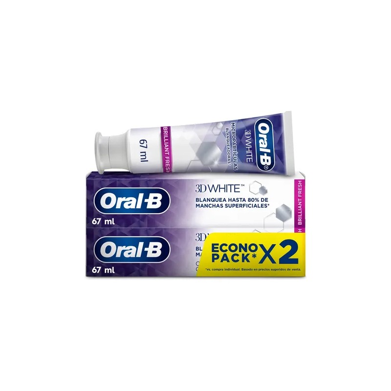 Pasta de Dientes Oral-B 3D White Brilliant Fresh Micropartículas Blanqueadoras 67 ml, 2 Unidades