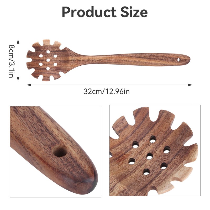 • 🍜 TIP: Pasta strainer spoon logs have interlocking grain, you can wash the spaghetti spoon with water instead of boiling water after you receive the spaghetti spoon.