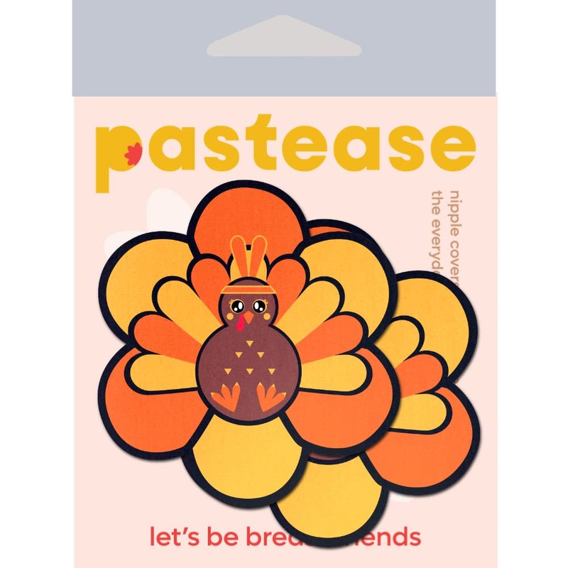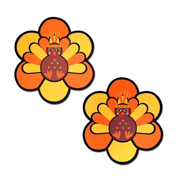 PASTEASE Nipple Pasties - Thanksgiving Kawaii Fall Turkey Nipple Pasty - Festival Rave EDM Party or Club Aesthetic Outfit Accessory Orange/Yellow