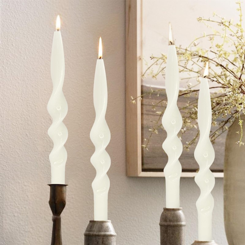 - Unscented Candle Timeless Elegance: Elevate your space with the timeless allure of tapered candles; their slender profile and graceful swirl shape exude sophistication; casting a gentle glow for any occasion