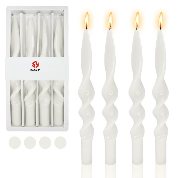 Pastel Candlesticks Spiral Taper Candles-Gedengni 10inches White Candle Stick Long Tapered Candle Twisted Candles for Anthropologie Home Décor Weddings Holiday Women Gifts,4pcs (White,24D)