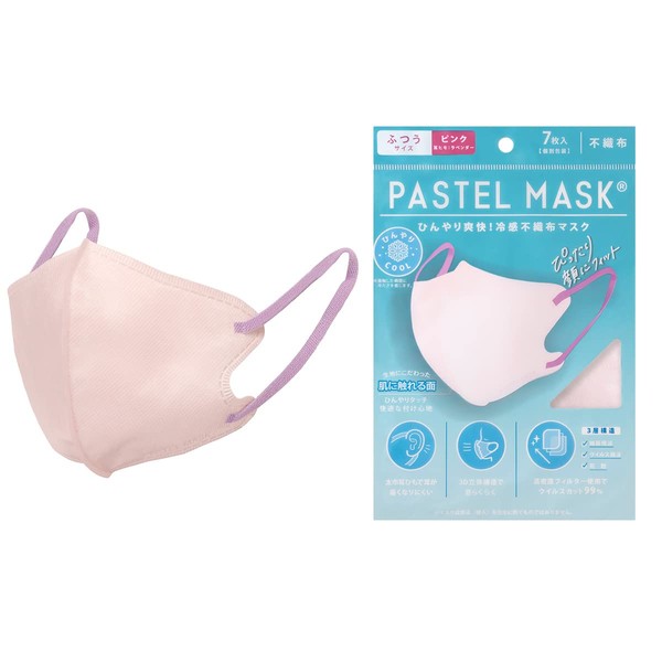 [PASTEL MASK] パステル マスク 不織布 冷感 ひんやり 立体 3D 三層構造 カラー 個包装 ピンク×紐ラベンダー ふつうサイズ