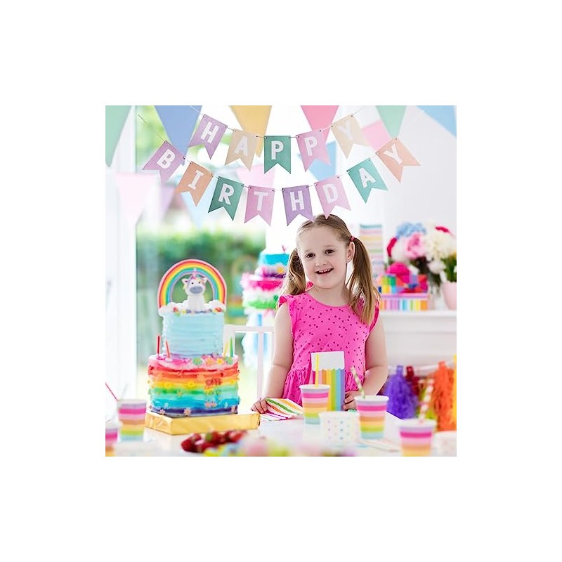 Pastel Rainbow Happy Birthday Banner Bunting Garland Flag Party Supplies Decoration for Kids Girls