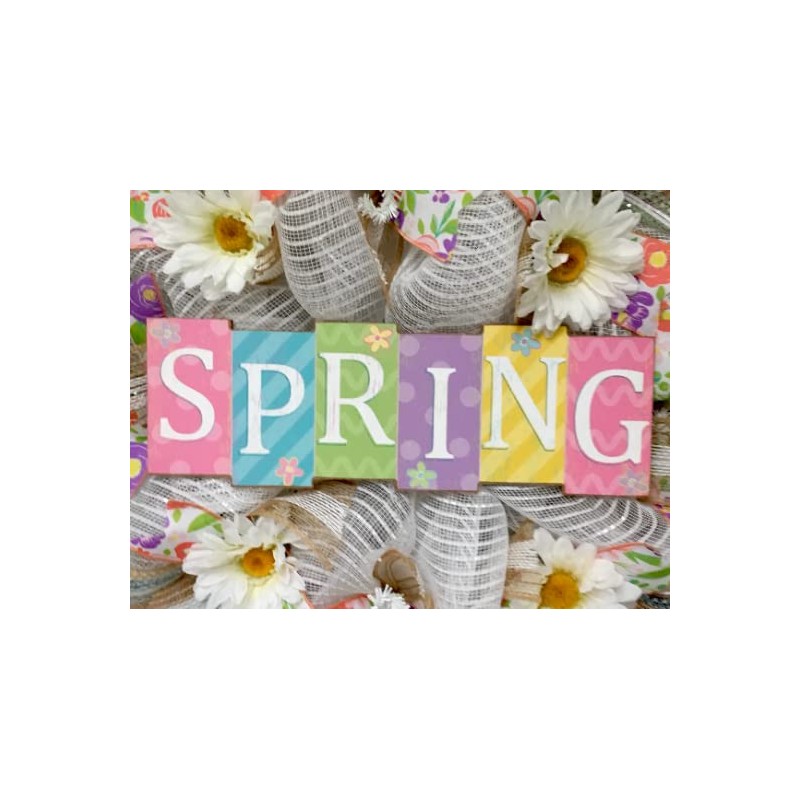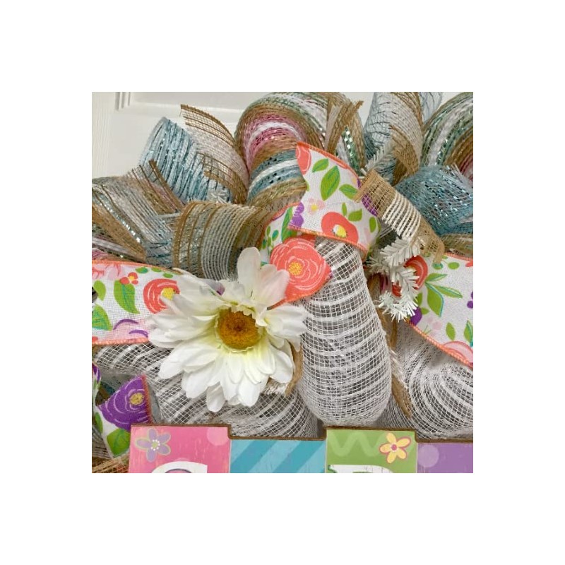 Pastel Spring Wreath With Daisies Handmade Deco Mesh