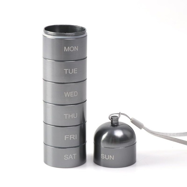Pastillero Semanal Metálico y Portátil: Organizador de Viaje a Prueba de Agua con 7 Compartimentos y Divisiones - Ideal como Planificador Diario de Pastillas