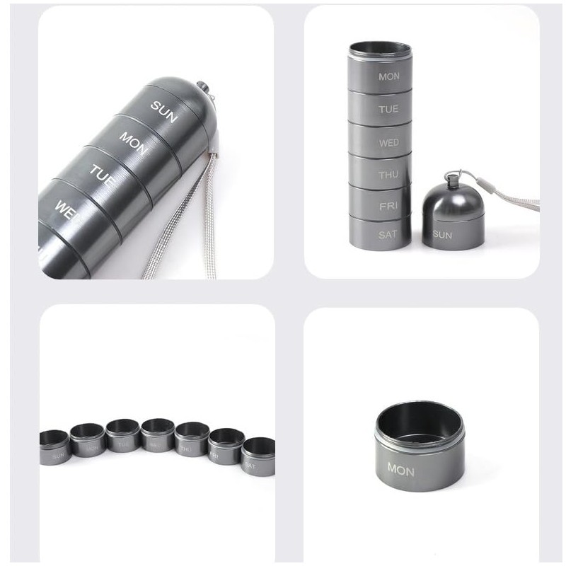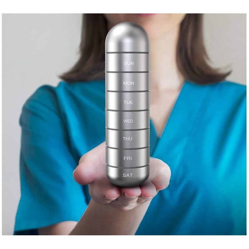 - Ideal para Viajar: Debido a su forma ligera y compacta, es un pastillero de viaje perfecto para llevar tus complementos y pastillas mientras viajas.