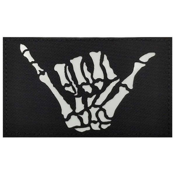 Patch Force Shaka Skeleton Hand PVC Rubber Patch - 3 x 2 Inch Hook Fastener P2080