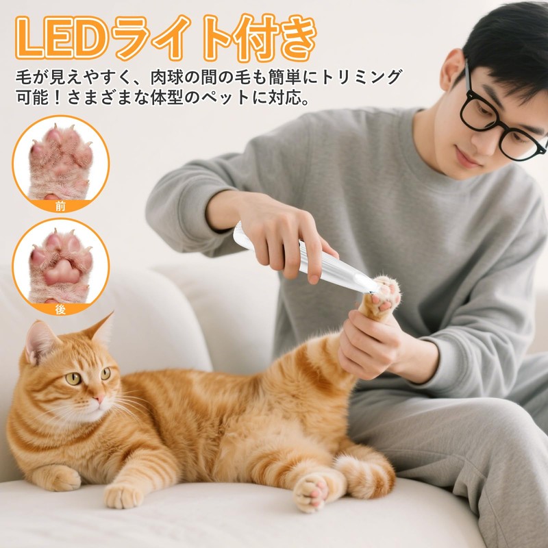 - Silent Design & LED Light Included: This pet trimmer has a quiet design that allows you to enjoy comfortable care without straining or fearing your pet while cutting. Quiet design reduces stress for dogs and cats sensitive to sound. The cat trimmer also comes with an LED light for easy visibility in dark areas and is trimmed to ensure details