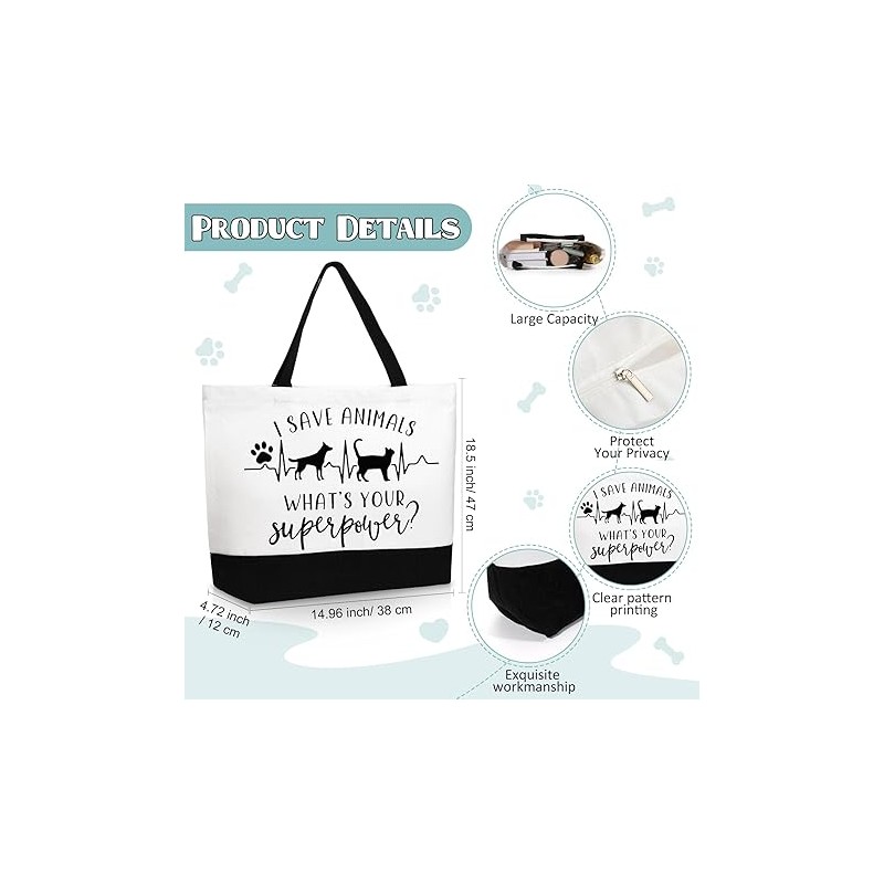 - Unique Design: both bags are printed with the classic quote "I save animals what's your superpower" on one side, accompanied by cute cat and dog patterns that are fresh and healing; These warm designs deeply resonate with caring individuals such as vet tech, veterinarians, medical staff, and animal protectors, showing recognition and tribute to their dedication; Every use brings a sense of warmth and encouragement
