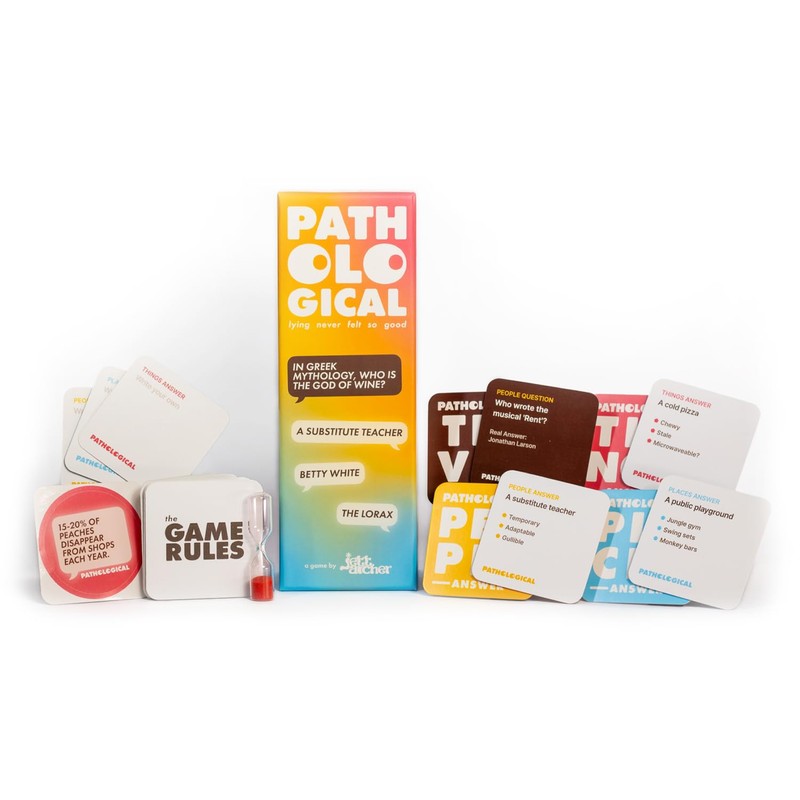 - PATHOLOGICAL: Lying Never Felt So Good — You are challenged to come up with the most convincing and ridiculous explanations for trivia questions using random answer cards. Perfect for social get-togethers with friends, family, or improv enthusiasts. It’s the ultimate test of your creativity and quick thinking!