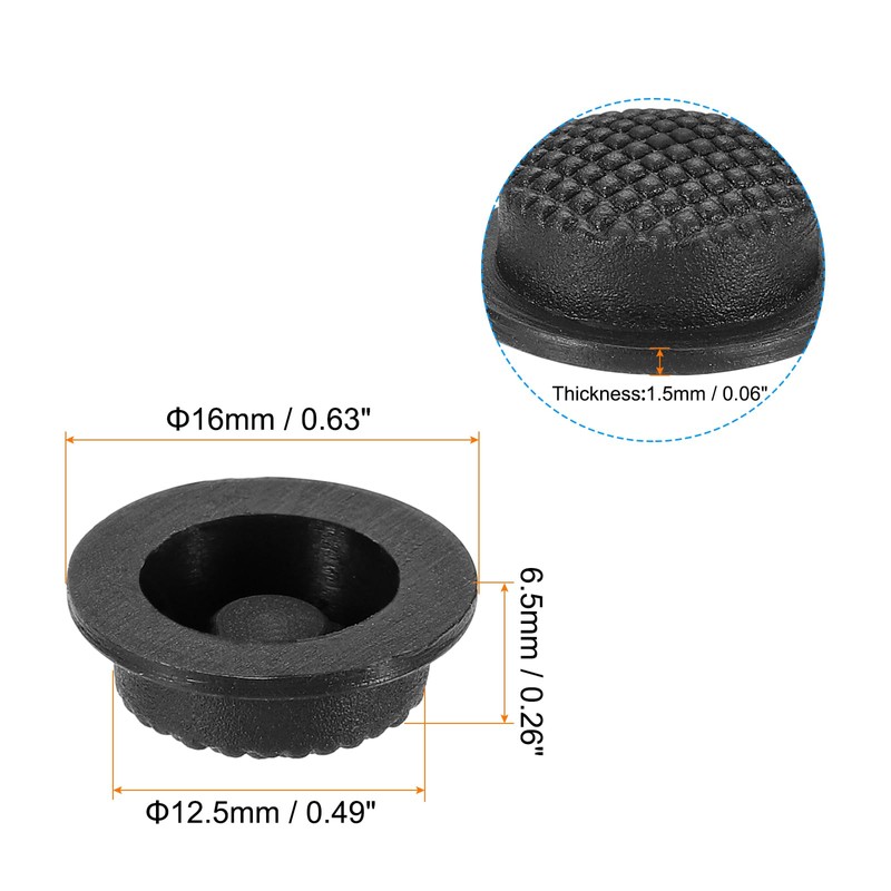 - Specification: Color: Black; Material: Silicone; Package List: 6 x LED Flashlight Switch Caps; Mounting Diameter: 12.5mm / 0.49"; Total Size: 16x6.5mm / 0.63x0.26inch (OD*H)