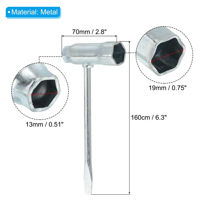 - BENEFITS: This combination hex wrench is made of metal with a T-handle for leverage, comfortable grip, convenience and durability. This hex wrench is designed with two different sizes of outer hex socket and one flathead screwdriver to meet your different needs