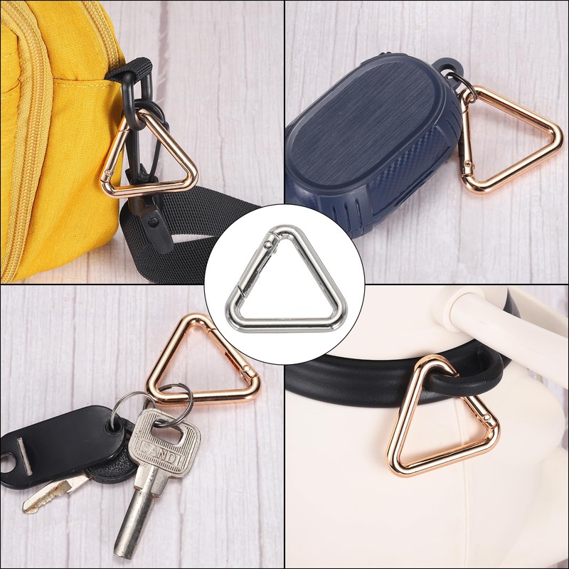 - Application: The metal triangle spring ring buckle can be used as a quick and secure connection point for various outdoor gear, backpacks, wallets, pet leashes, key chains and DIY projects, suitable for outdoor activities, camping, hiking, fishing, rock climbing and daily decorative use.