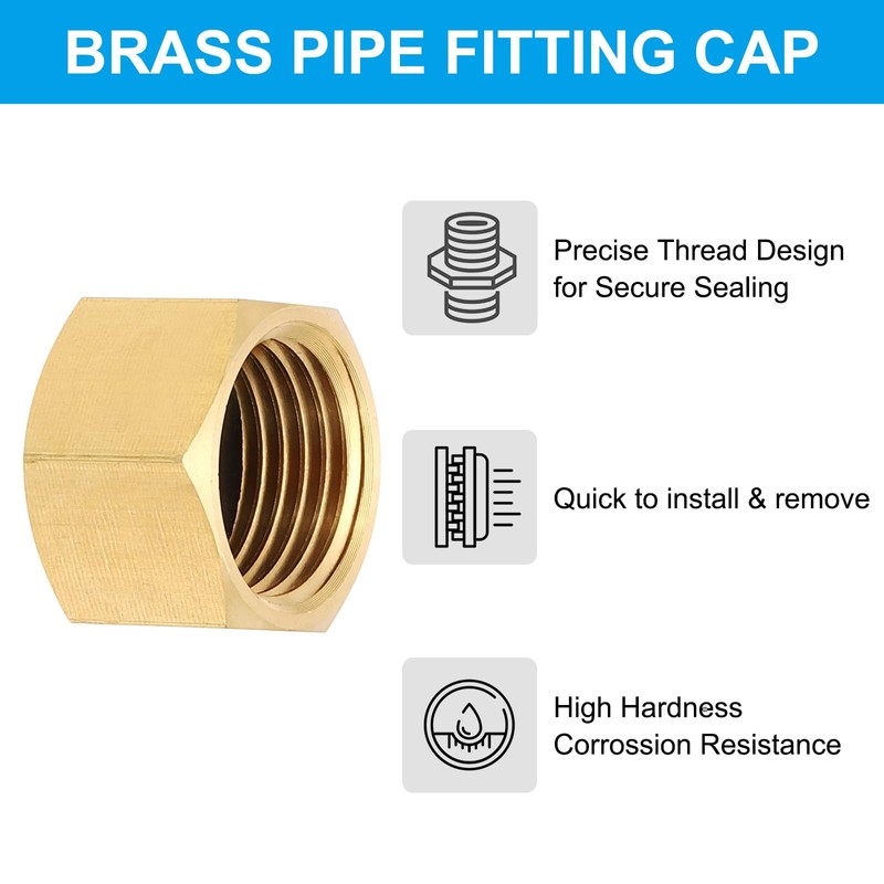 • Advantage: Made of good quality brass, the brass pipe fitting cap is corrosion resistant, has ductility at high temperatures, has low magnetic permeability, has high hardness, and is durable. With rubber gasket to provide strong seal without slipping. Precise thread for reliable sealing effectively prevents liquid or gas leakage, ensures product stability and safety during use, and is applied in closing, terminating, controlling flow, and changing the direction of piping.