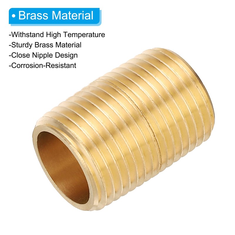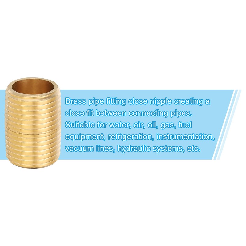 - Specification: Material: Brass; Thread Size: 1/2" x 1/2" NPT Male; Length: 29mm (1-1/9inch); Temperature Applicable Range: -65 to 250 Degrees F; Package List: 10Pcs x Brass Pipe Fitting Close Nipple