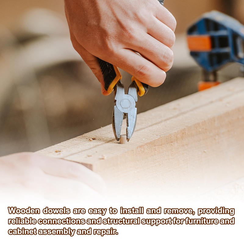 - Advantage: The fluted dowel pins are made of natural hardwood material, high density, high strength, not easy to break, detachable and reusable, easy to store, and used for a long time. The two ends of the straight slot wood dowels are tapered for easy connection and secure fit between wooden components