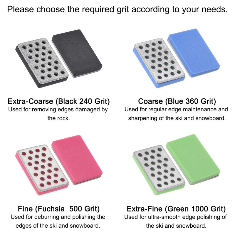 - Color: Green; Type: Extra-Fine; Grit Type: 1000 Grit; Size: 30 × 20 × 5 mm / 1.2“ x 0.8" x 0.2" (L*W*H); Packing List: 2Pcs × Mini Ski Snowboard Diamond Edge File