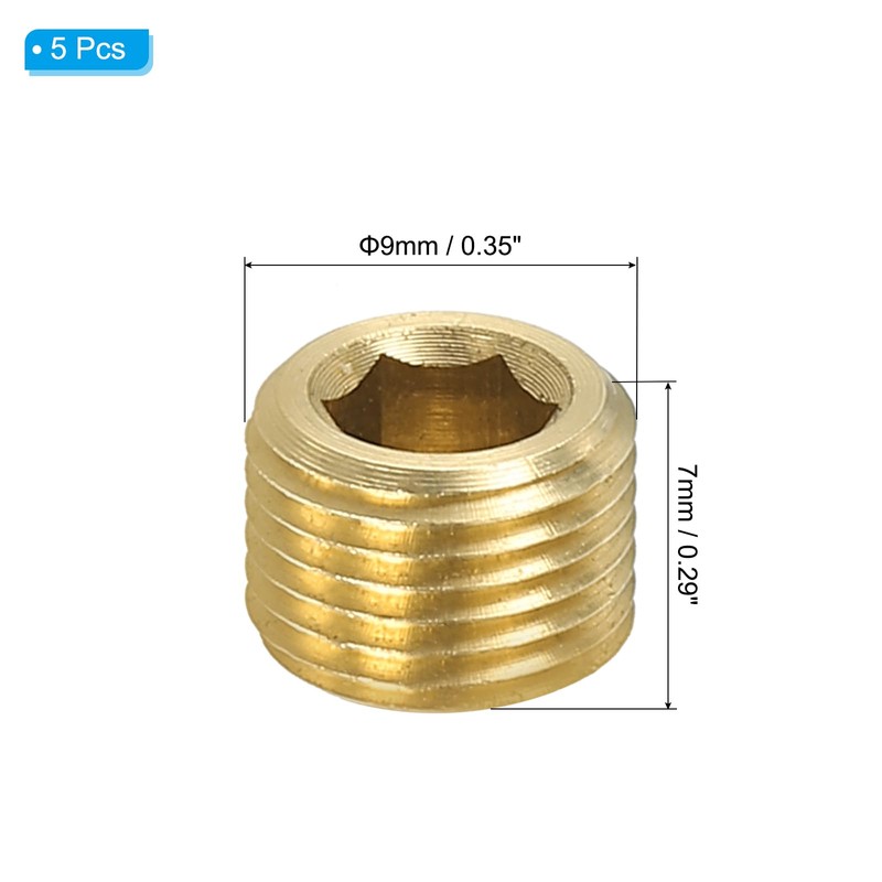 - Material: Copper; Inner Diameter: 1/8; Size: 7x9mm / 0.28x0.35inch(L*W); Thread Type: BSP; Packing List: 5 x Hex Thread Socket