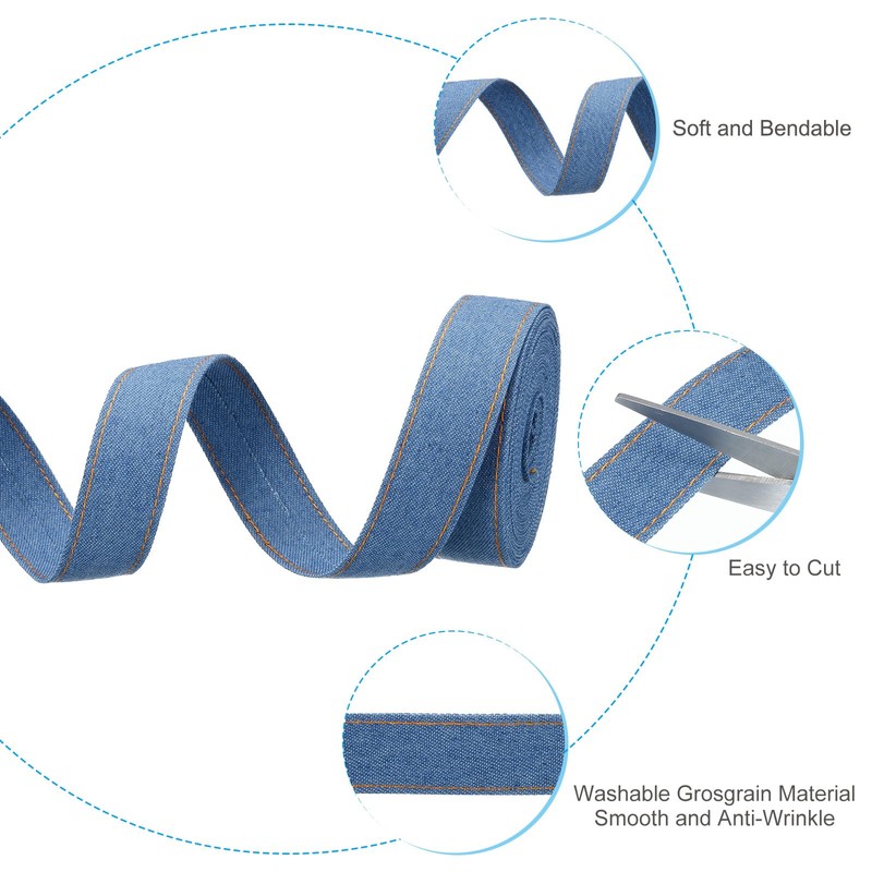 - Specification: Material: Denim Cloth; Color: Blue; Each Size: 5m x 2.5cm/5.5yard x 1inch (L x W); Package List: 1 Roll x Denim Ribbon