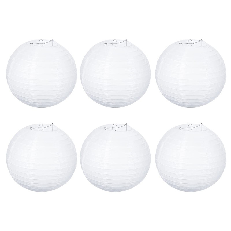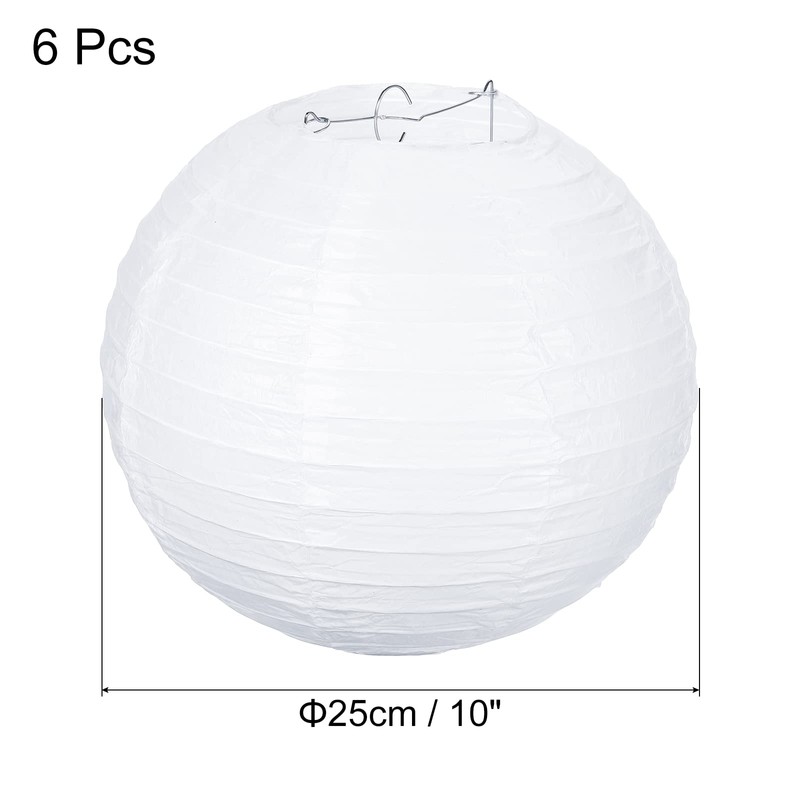 - Specifications: Color: White; Material: Iron, Paper; Outer Diameter: 25cm(10 Inch); Packing List: 6 Pcs x Paper Lanterns(Including steel wire frame)