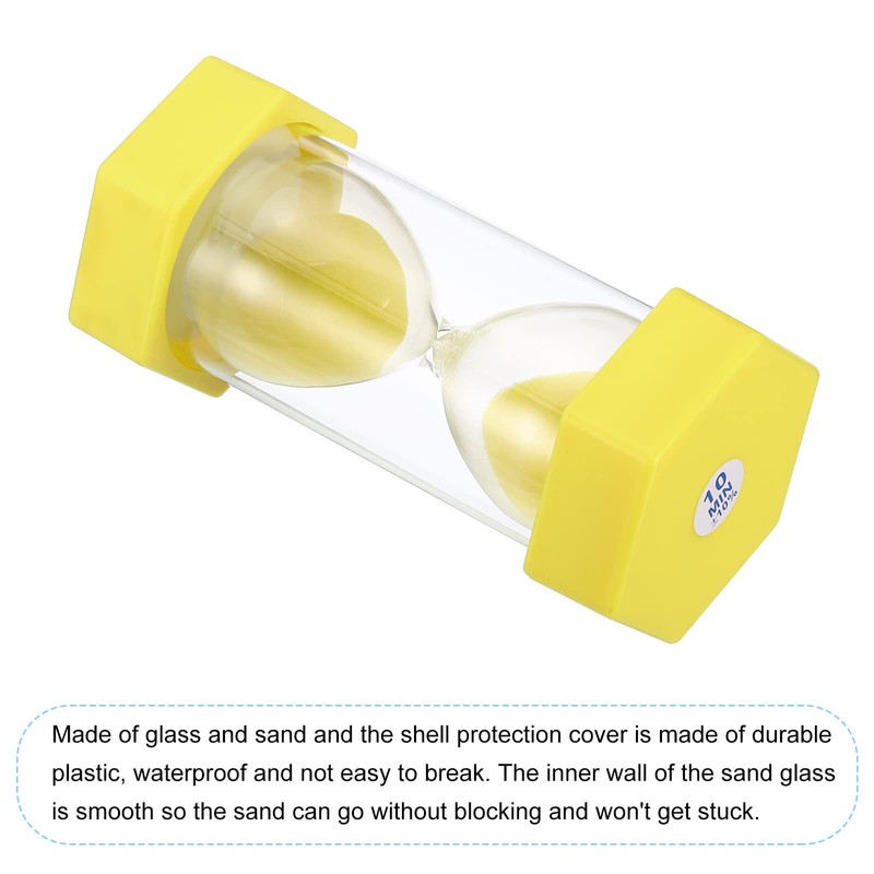 - Color:Yellow; Material: plastic,glass,sand; Size: 6.5 x 5.7 x 12.7cm/2.5 x 2.2 x 4.9inch(L x W x H); Maximum timing duration: 10min; Packing List: 1Pcs x Sand Timers