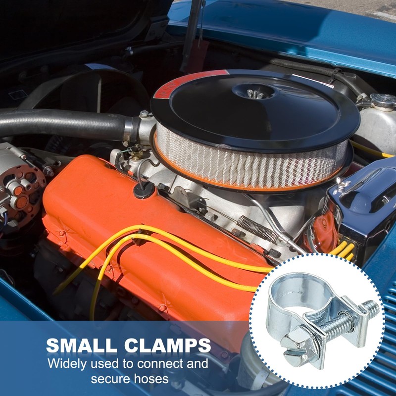 - Application: These small clamps are used to connect and secure hoses. widely used in agriculture, material handling, ships, factories, and buildings to fix indoor and outdoor hoses, tubes, cables, pipes, and fuel lines