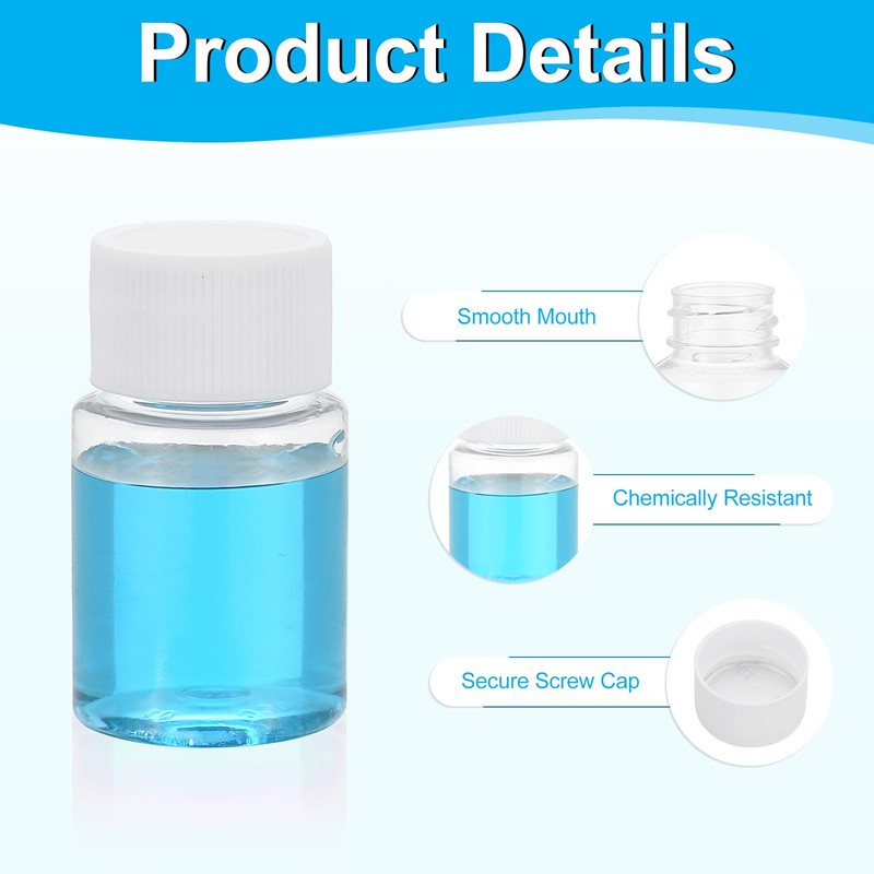 PATIKIL 10 Pcs 30ml Reagent Bottles, PET Wide Mouth Round Bottles with Screw Cap for Lab Water Reagent Liquids Solid Sample Storage Seal, Transparent