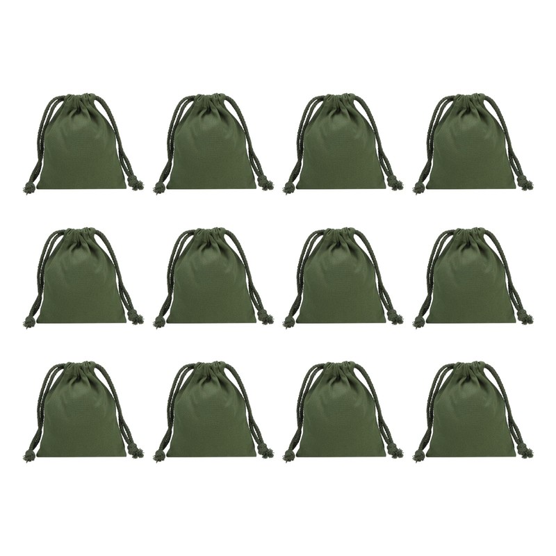 PATIKIL 100% Cotton Reusable Drawstring Bags, 5x6 Inch 12 Pack Multipurpose Washable Cotton Dust Bags, Luggage Organizer, Travel Essentials Storage Pouch, Dark Green