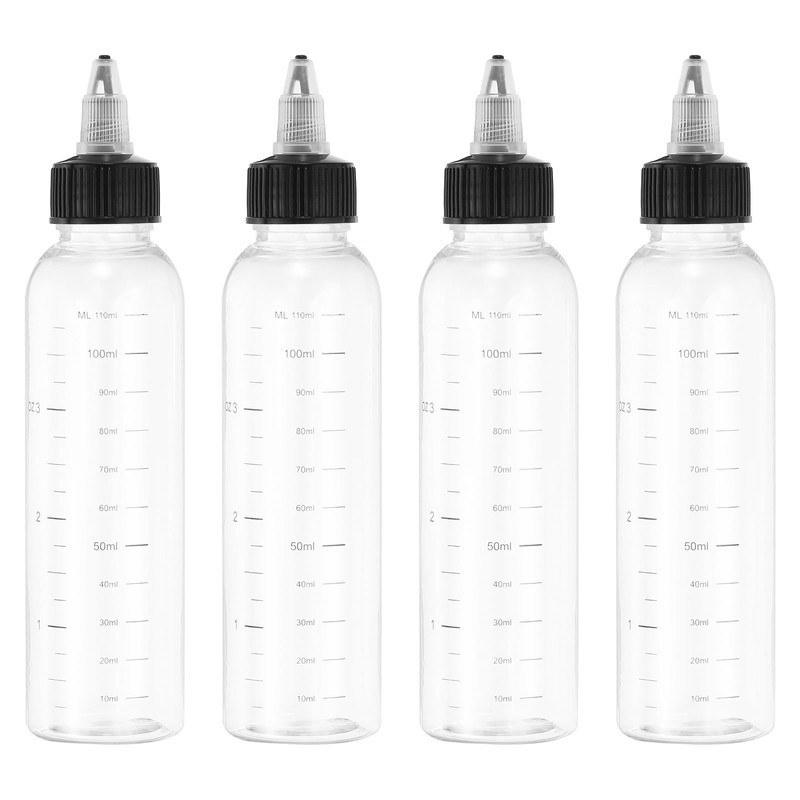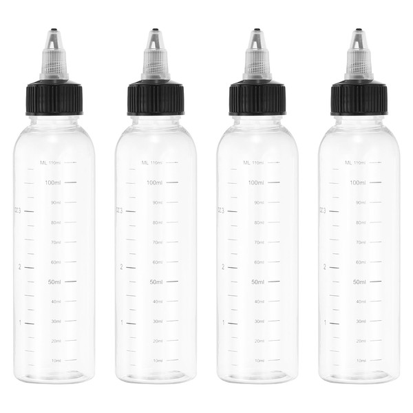 PATIKIL 110 ml/4 OZ Plastic Squeeze Bottles with Black Twist Cap, 4 Pcs Gradu...