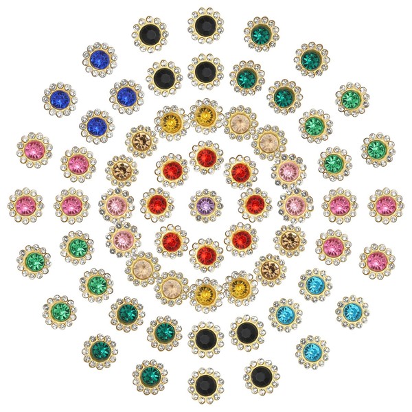 PATIKIL 12mm Sunflower Diamond Sew on Rhinestones, 150 Pcs Rhinestone Sequin Embellishments Crystal Glass Metal Base Flower Claw Rhinestones for Bedazzling Crafting Clothes, 10 Color