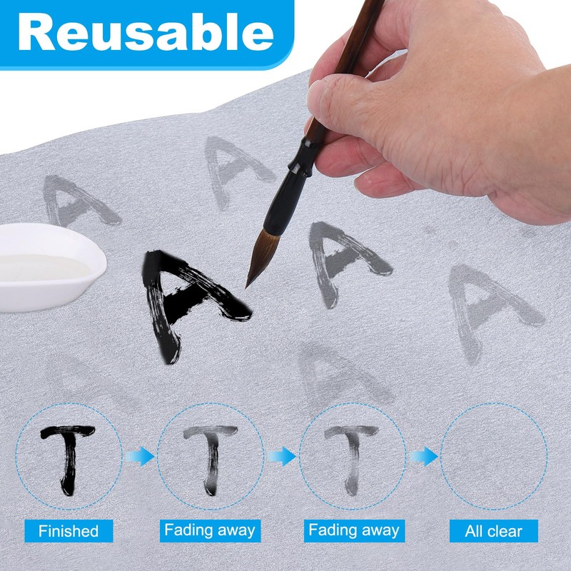 - 🧡1.Using water can also achieve the effect of ink writing ❤ 2.Reusable : This water writing cloth just needs to wait until the water is dry, you can pick up the brush we provide to touch the water and write again. The traces of water disappear, and the cloth returns to its original shape, helping Chinese calligraphy lovers save paper and ink, and don't worry about ink staining hands, clothes, and tables.