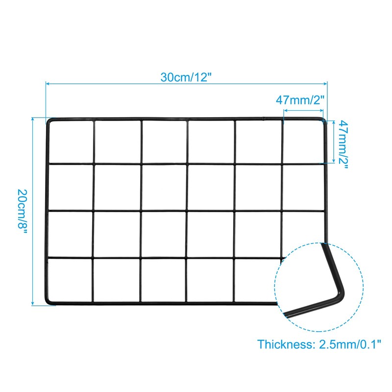 - Specification: Material: Metal; Color: Black; Size: 30x20cm/12x8" (LxW); Thickness: 2.5mm/0.1"; Hole Size: 47x47mm/2x2" (LxW); Package List: 1 Pcs x wall grid panel
