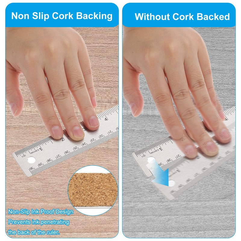 - Instruction: Non-slip cork backed design, keeps the ruler from slipping around when drawing straight lines on slippery materials, it can also effectively prevent the ink from penetrating the back of the ruler while drawing.