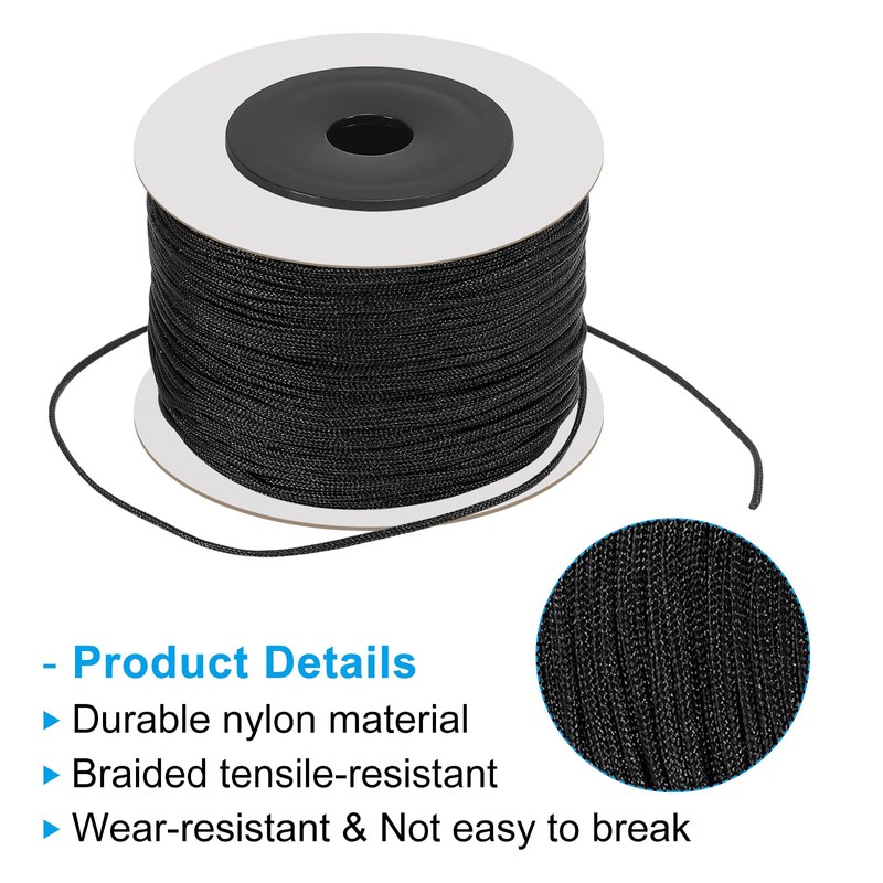 - Color: Black; Material: Nylon; Cord Length: 80 Meter / 87.2 Yards; Cord Diameter: 1 mm; Packing List: 1 x Nylon satin cord