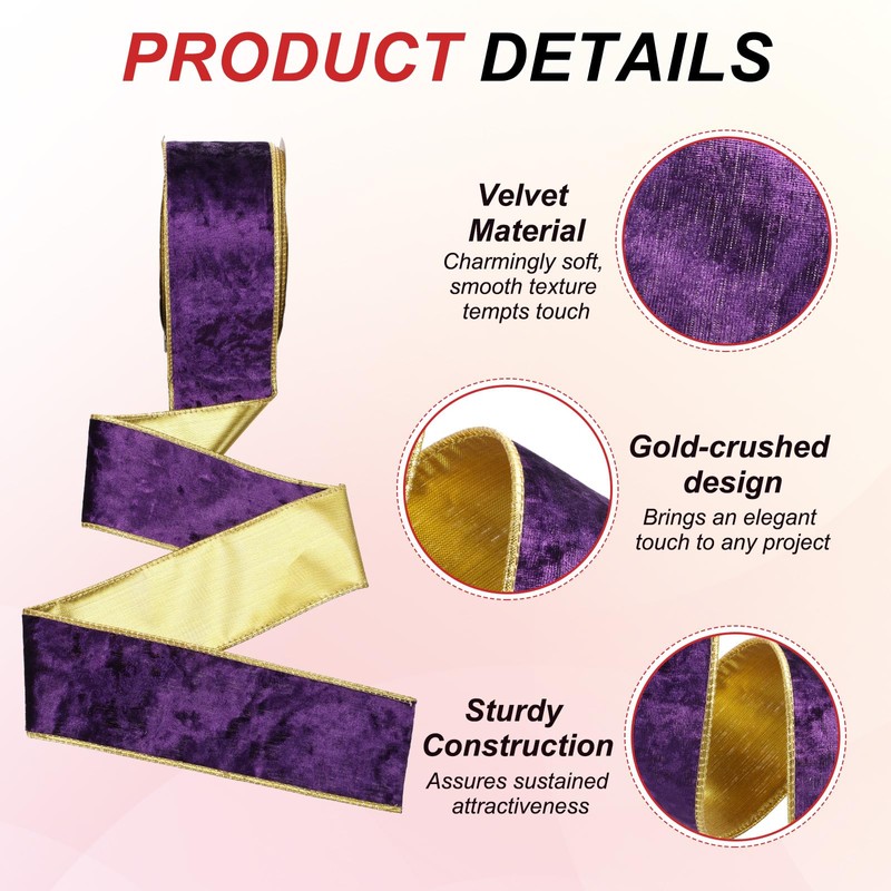 - Color: Purple; Material: Velvet; Size: 9 Meter x 6.3 cm / 9.8 Yard x 2.5 Inch (L*W); Packing List: 1 Pcs x Velvet Wired Ribbon