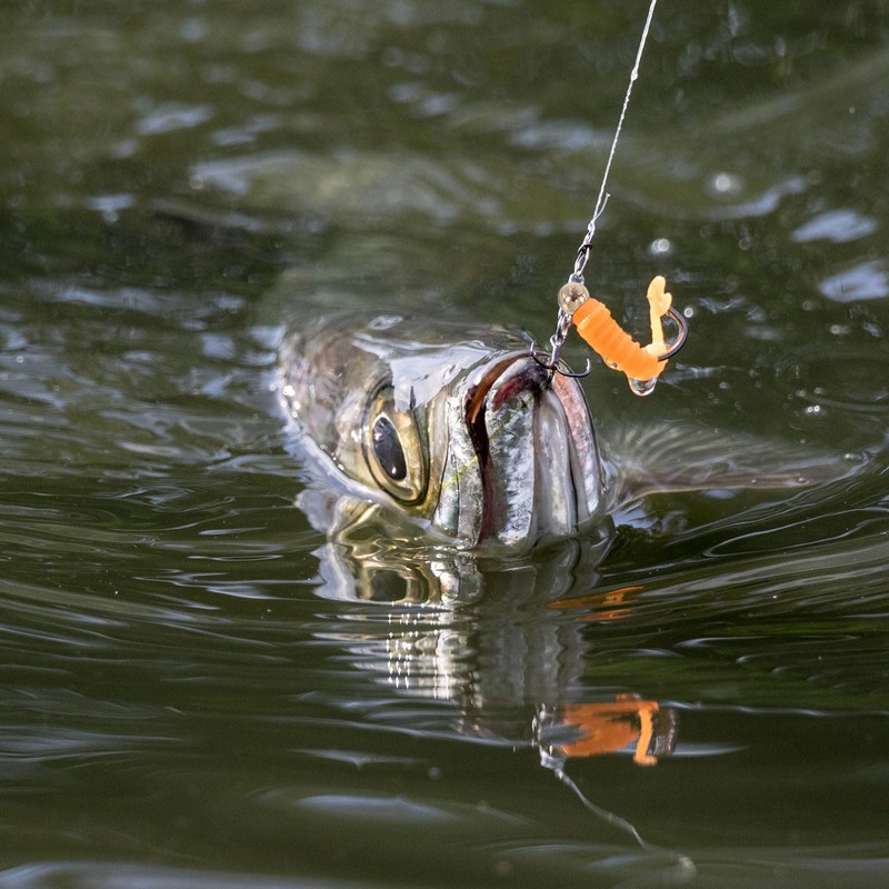 Fix fly tying tungsten beads to the fishing line through the slot to Make the bait look like a fly and attract fish.