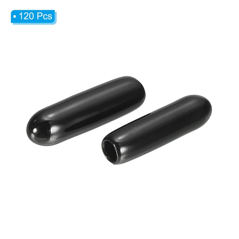 PATIKIL 2.5MM Vinyl Rubber End Caps, 120 Pack Flexible Bolt Screw Covers Caps Round Thread Protector Caps for Metal Tubing Rod Bolts, Black