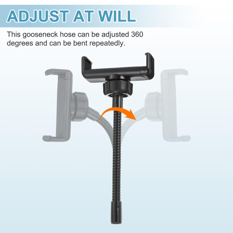 • The gooseneck phone holder adopts the U.S. 1/4"-20 UNC female thread, which is easy to install on the ring light holder, tripod, or any other device with a 1/4-inch thread. It is widely used in live streaming, performances, photography, teaching videos, and other scenes.