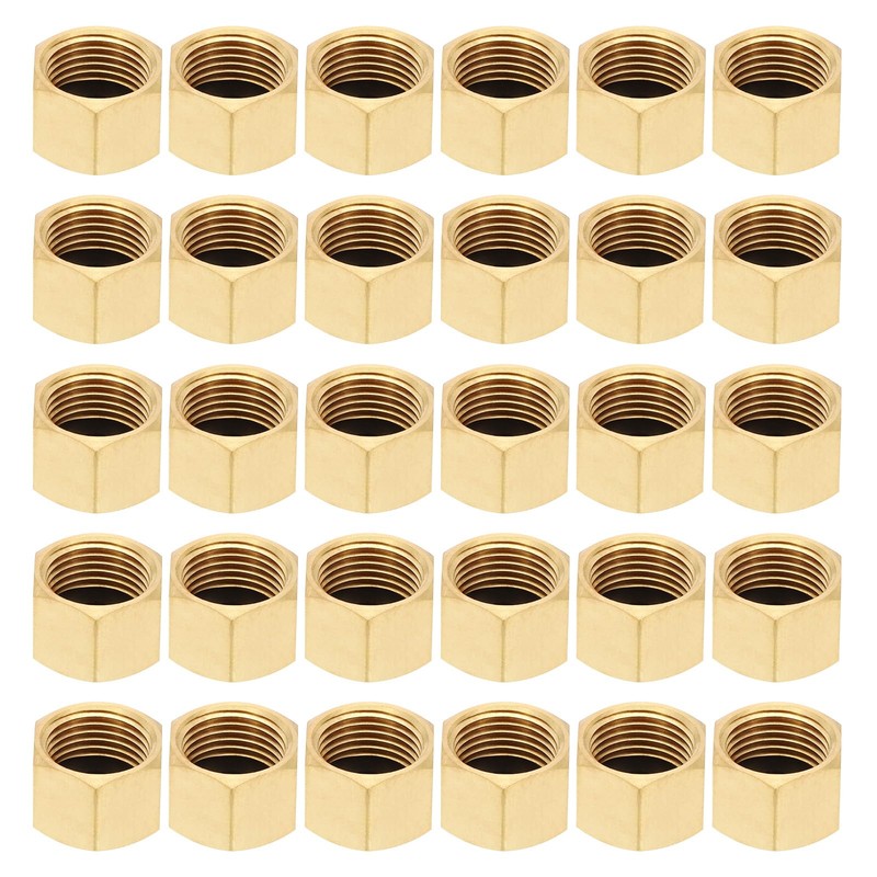 - Specification: Material: Brass; Thread Size: 3/8" NPT Female Thread; Inner Diameter: 15.875mm (0.62"); Total Size: 13.5 x 18.94mm/ 0.53 x 0.75inch (L x Hex Width); Package List: 30Pcs x Brass Pipe Fitting Cap, 1Pcs x Rubber Gasket