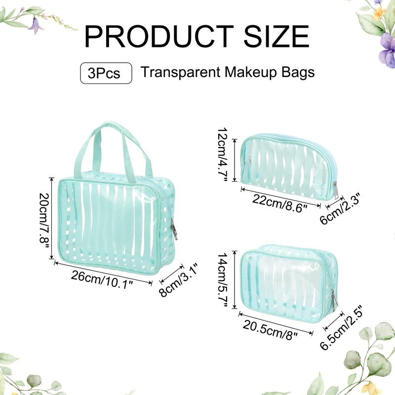 Packaging List: 1 Pcs x Large Transparent Makeup Bag with Handle; 1 Pcs x Medium Transparent Makeup Bag; 1 Pcs x Small Transparent Makeup Bag