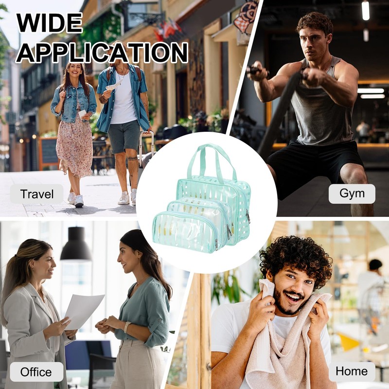 - Application:Clear PVC Makeup Cosmetic Bag is easy to carry, designed for travel, vacation, business trip, fitness, home, office, festival, wedding, and weekend vacation. Suitable for use as a , sports bag, cosmetic bag, toiletry bag, gym bag, swimming bag, storage bag, waterproof bag and travel bag.