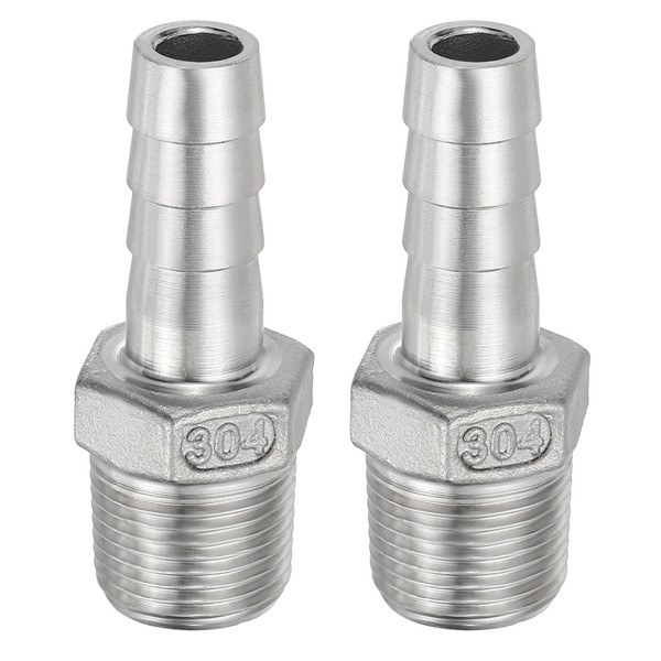 PATIKIL 304 Stainless Steel Barb Hose Fitting, 2 Pack 3/7" Hose Barb x 3/8" NPT Thread Pipe Connector Adapter Quick Fittings for Bore Air Water Connecting
