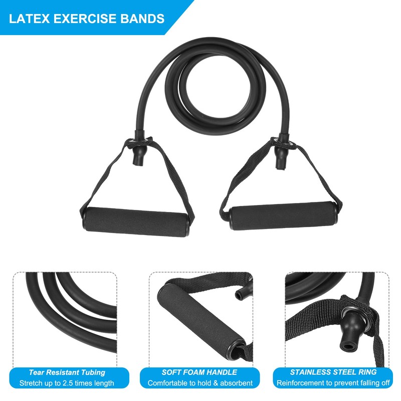 - DURABLE MATERIAL - This gym resistance band is made of durable latex material, which has good elasticity, and wear resistance. Non-slip foam handles ensure a secure grip. The absorbent and comfortable foam handles ensure a great workout experience