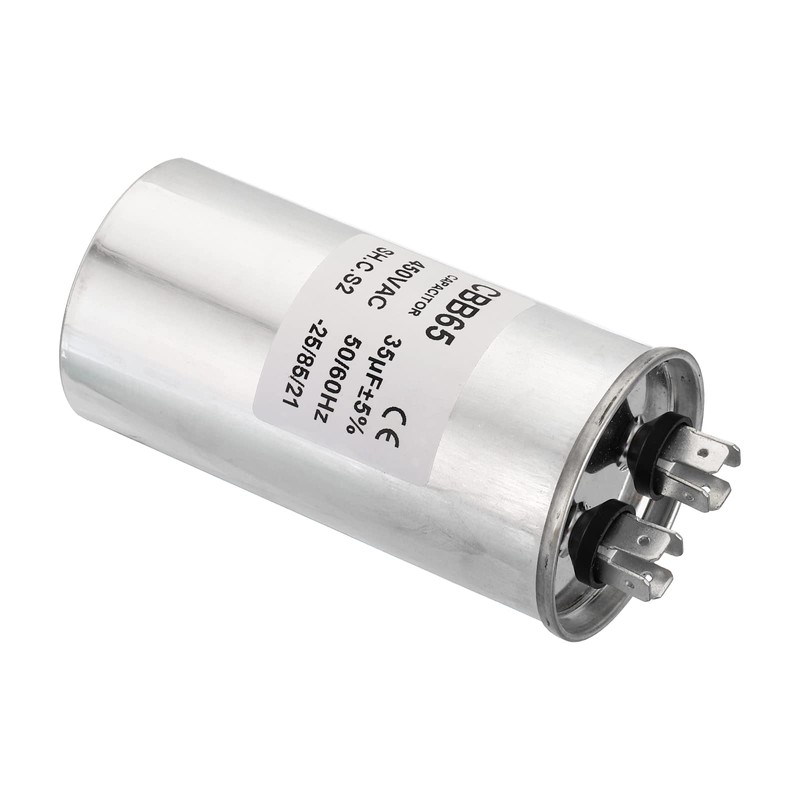 Specification:Model: CBB65;Material: Metallized Polypropylene, Aluminum Case;Lead End:2 Terminal (8 pins);Rated Capacity: 35uF;Tolerance: ±5%;Rated Voltage: 450V AC;Rated Frequency: 50/60Hz;Climatic Category: -25/85/21;Overall Size: 50 x 100mm/1.95 x 3.9inch (D x H); Package Includes: 1 x CBB65 Capacitor