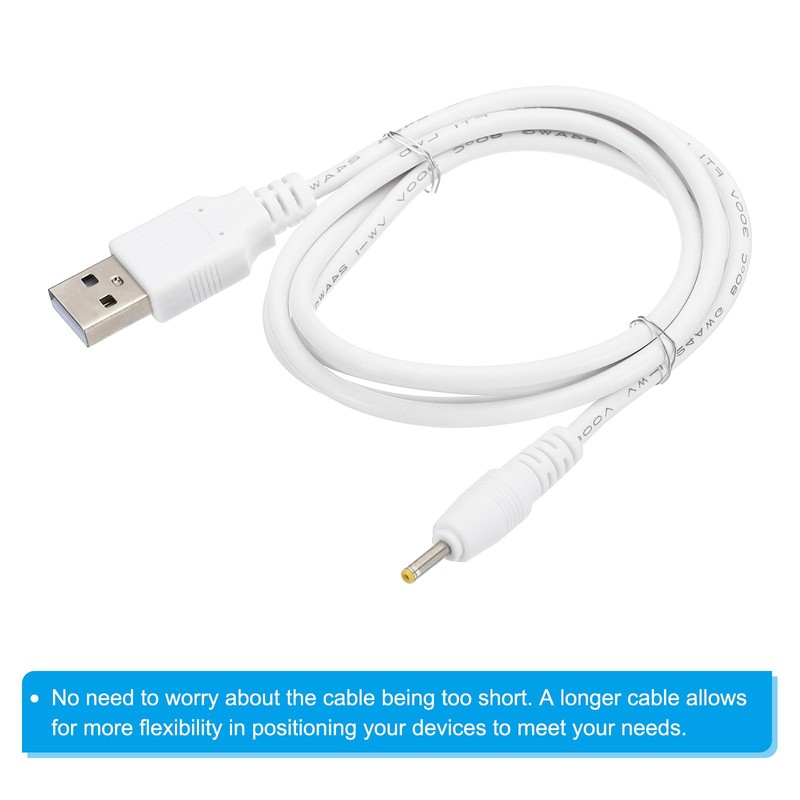 - Specification: Material: PVC, Copper; Color: White; Wire Specifications: 24AWG; Cable Length: 1m / 3Ft; Plug Size: 2.5 x 0.7mm / 0.1 x 0.03inch (OD*ID); Package List: 4 x USB to DC power cable
