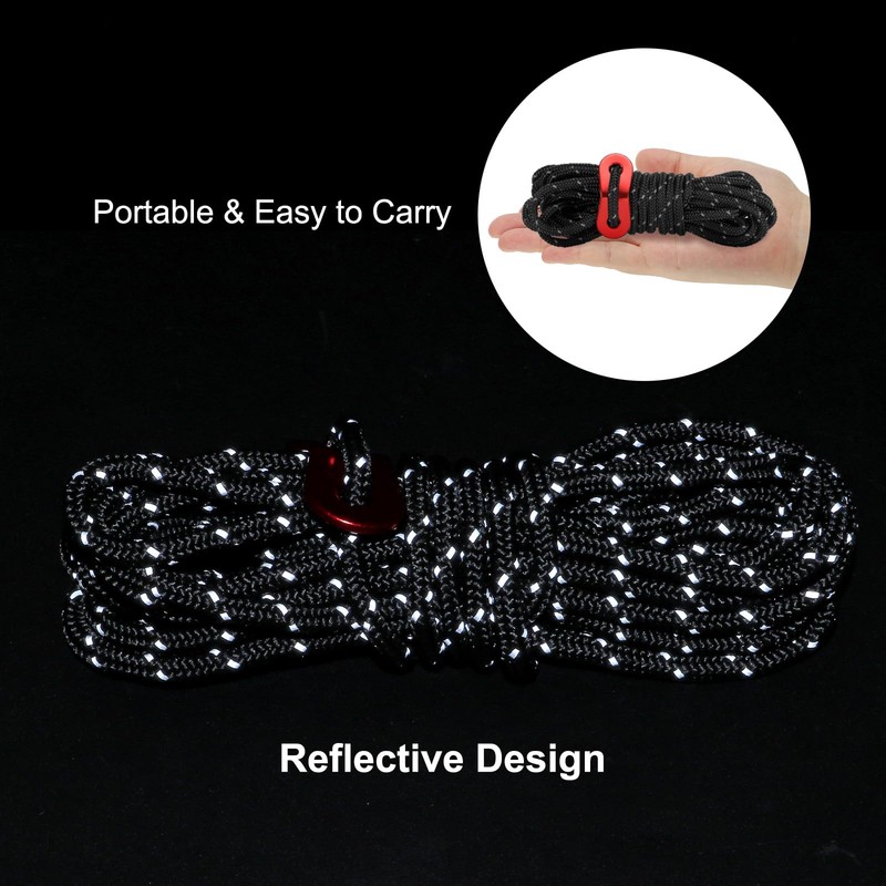 - Feature: The tent rope is made of Polypropylene, fine workmanship, smooth and soft, lightweight and portable, and not easy to break. It is good at its pulling strength, can endure significant impact, and possesses excellent stability that is resistant to deformation.