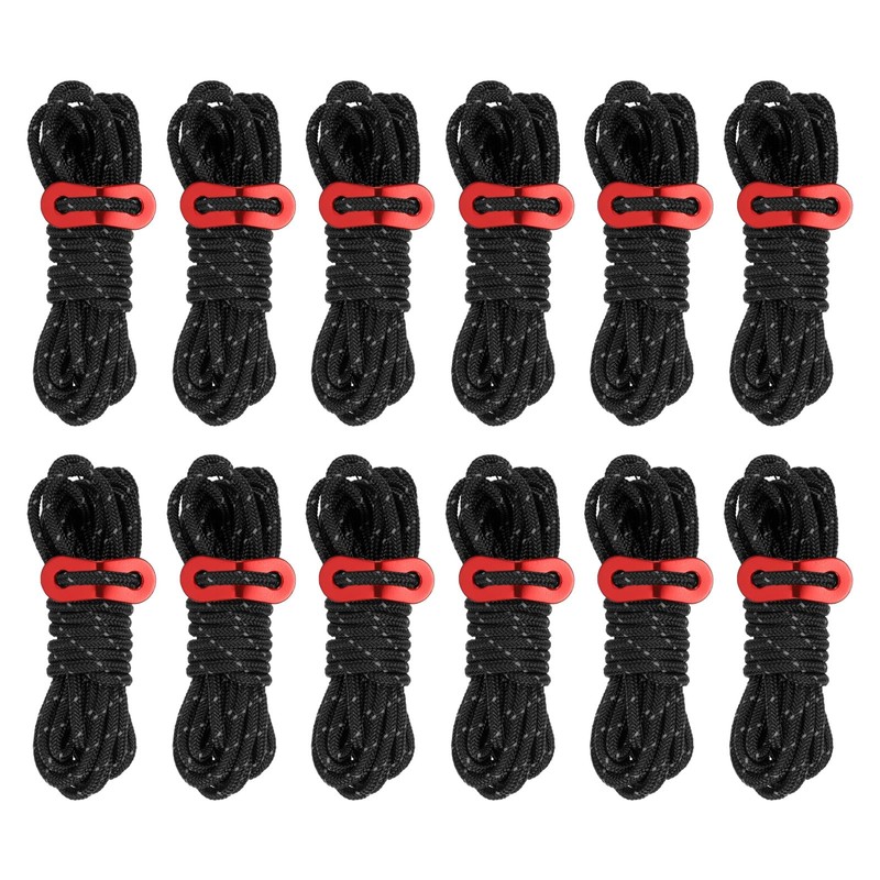 Packing List: 1 Set - 12 x Tent Ropes & 12 x Aluminum Cord Adjusters