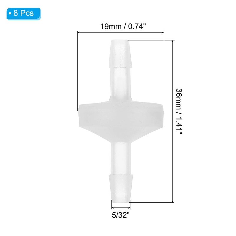 - Size: 36 x 19 mm / 1.41 x 0.74 Inch; Interface Size: 5/32 Inch; Applicable Temperature: -40~160℃; Applicable Pressure: 0.08 MPa; Package Content: 8 Pcs x Micro Diaphragm Check Valve